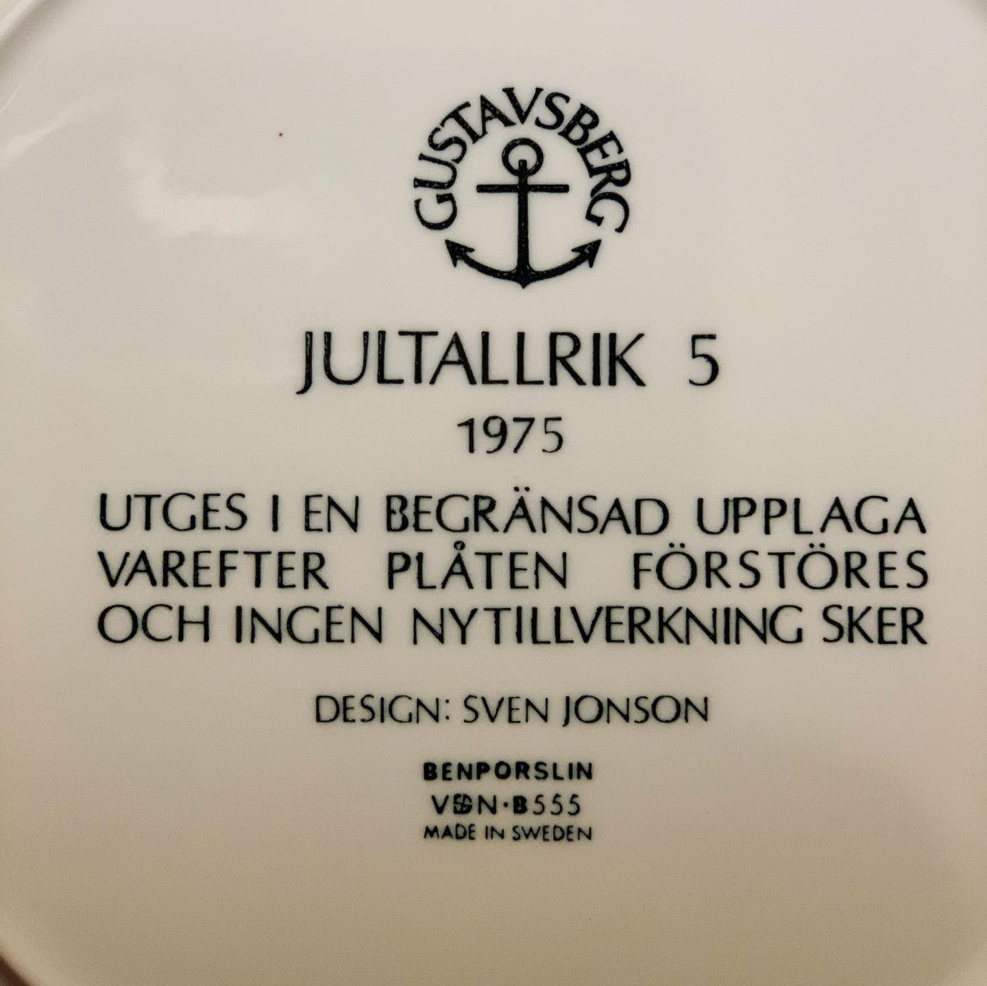 Mellandagsmys med sonens goda lussebullar och jultallrikar från Gustavsberg i finaste benporslin. Har fem stycken som jag köpt – underbar retro från 1970/80-tal. Formgivna av Sven Jonson (1934-1988), självlärd målare vid Gustavsberg. Kolla in årtalen. Siffran 555 anger att de tål maskindisk. Att köpa sådana samlartallrikar var högsta mode under 1970- och 80-tal. De kostade flera hundra kronor styck. Idag krossar folk dem och för att göra mosaik – fy. Använd dem istället – de är unika och av fint porslin. Jag har köpt dem för 20 kr styck!!!