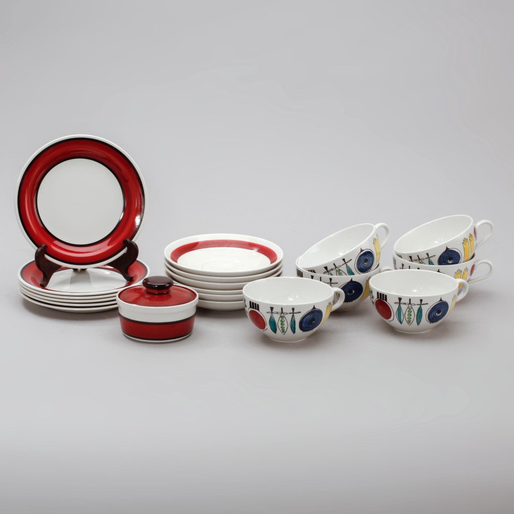 Kaffeservis av Stig Lindberg (1916-1982) för Gustavsberg, i produktion mellan 1951-1965. Utrop med 35 delar värderat till 3 000 kr hos Växjö auktionskammare i maj. Klubbat för 8 148 kr. Samma dag klubbades själva matservisen med 39 delar för 14 820 kr, utropet var 5 000 kr.