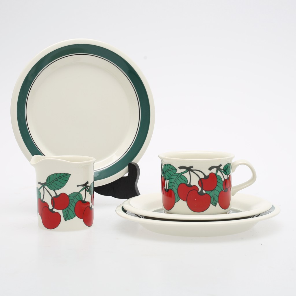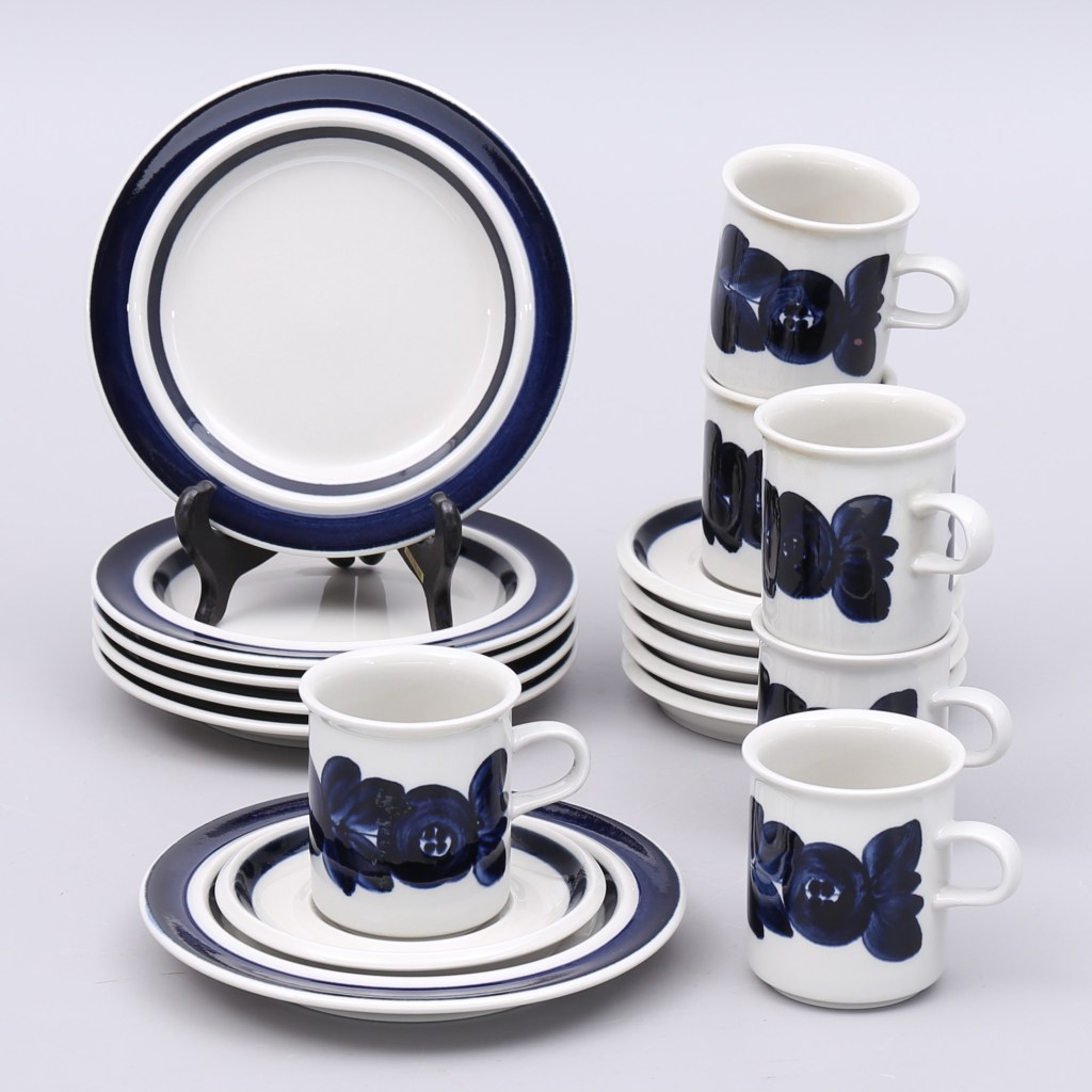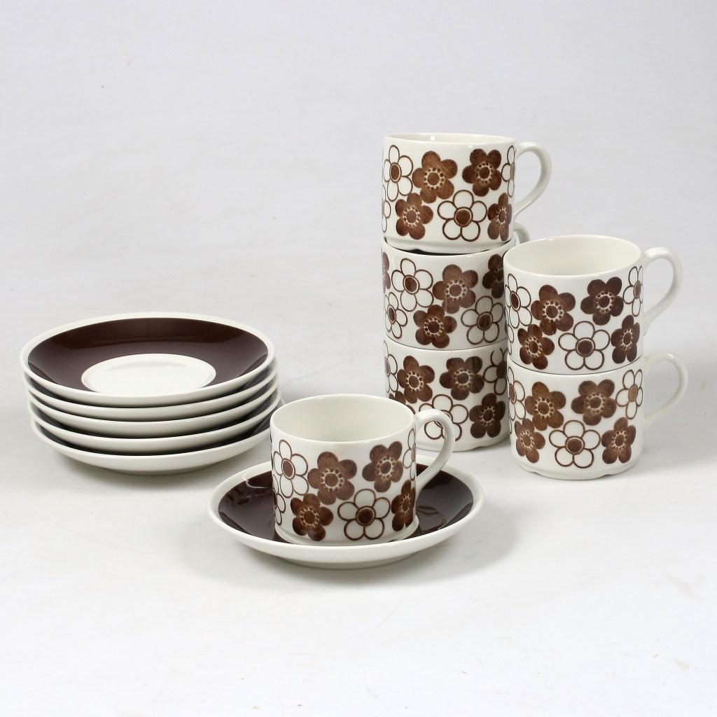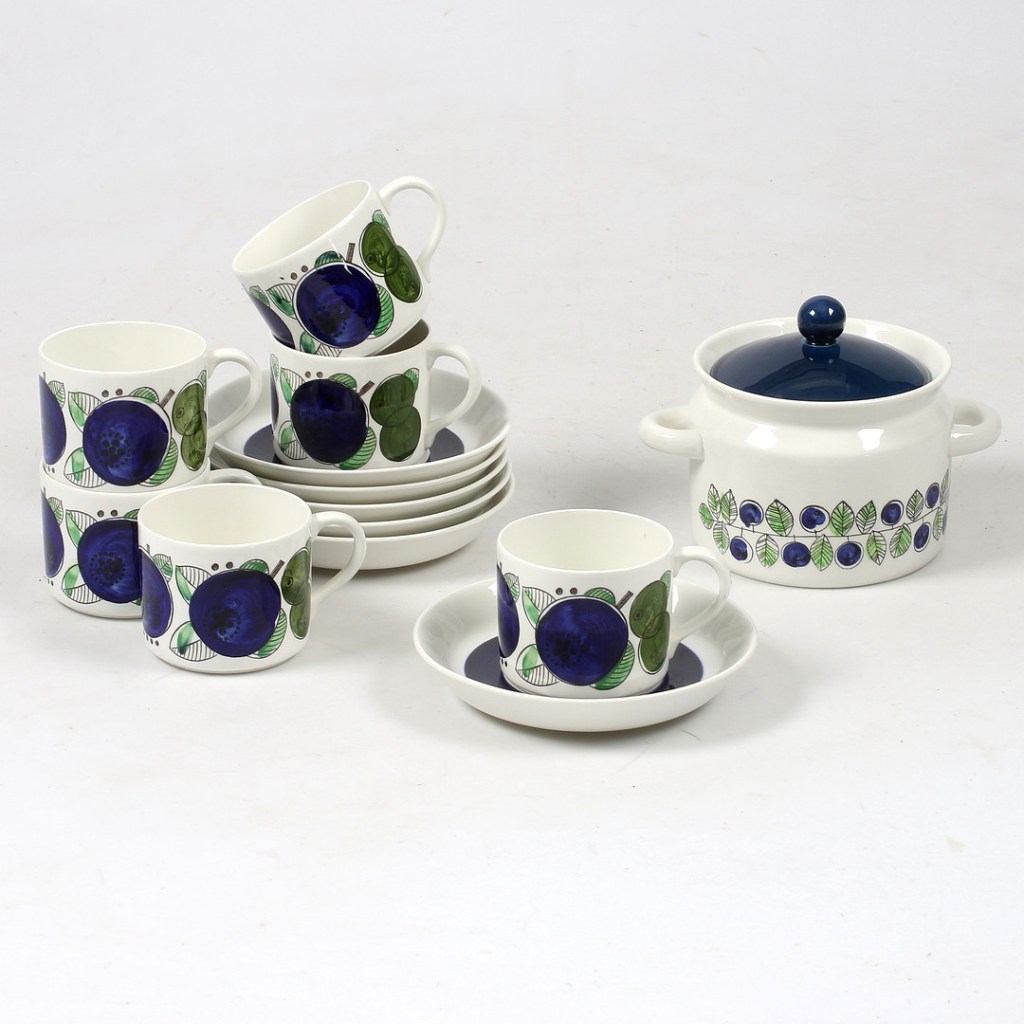 Formgiven av Inkeri Leivo för Arabia, i produktion mellan 1975 och 1979. Sex koppar med fat, sex assietter och en gräddkanna hade ett utrop på 800 kr hos Thelin & Johansson, klubbades för 3 420 kr i november.