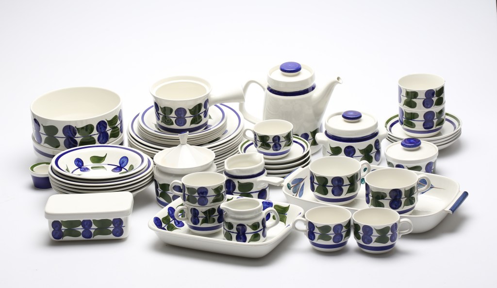 En älskad servis av Hertha Bengtson (1917-1993), kom i mitten av 1950-talet och tillverkades fram till 1988. Under 1960-talet fanns den även med brun och grön dekor. Ett utrop med 67 delar, varav sex kaffekoppar med en kanna till, hade ett värderat pris på 4 000 kr, men gick för 8 010 kr hos Göteborgs auktionsverk i januari.