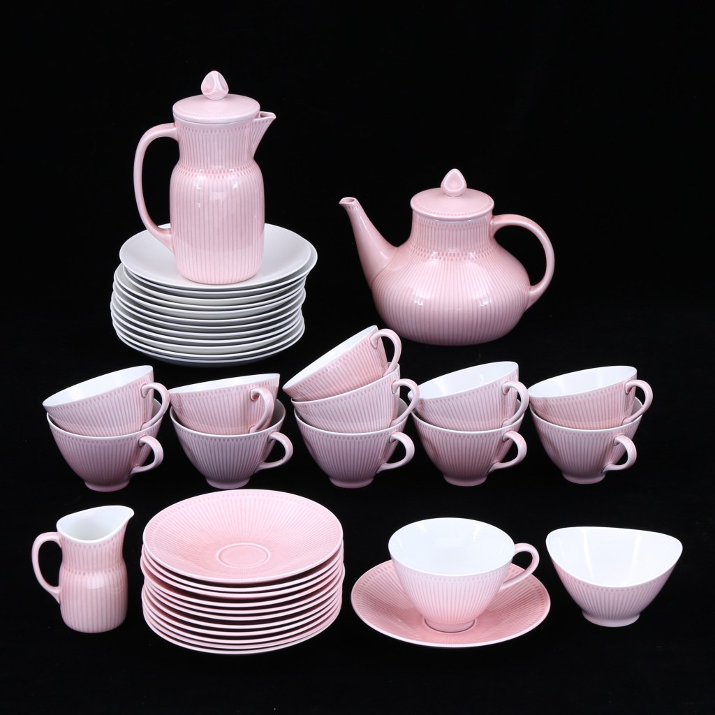 Kaffe-, te- och servis av Hertha Bengtson. Tillverkades mellan 1957 och 1966 i grått och rosa. 40 delar klubbades för 10 200 kr hos Växjö auktionskammare i mars. Utropet var 5 000 kr.
