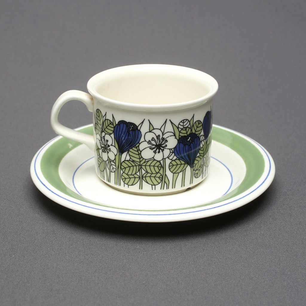 Esteri Tomula (1920-1998) var formgivare hos Arabia. Hon hämtade inspiration från den finländska faunan. Sex kaffekoppar med fat i serien Krokus, utrop 800 kr men klubbade för 4 358 kr i juli hos auktionshuset Kolonn.