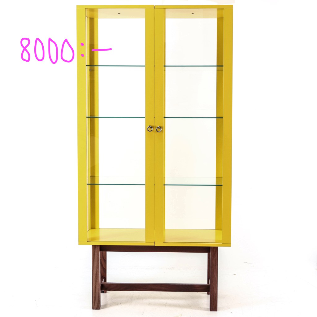 2. Vitrinskåp Stockholm. Kom 2013 av Ola Wihlborg, målad och betsad ask, såldes fram till 2017, kostade 3 495 kr. Ingick i Stockholmsserien. Kom även i beige. Flera skåp har nu klubbats för 8 000 kr.