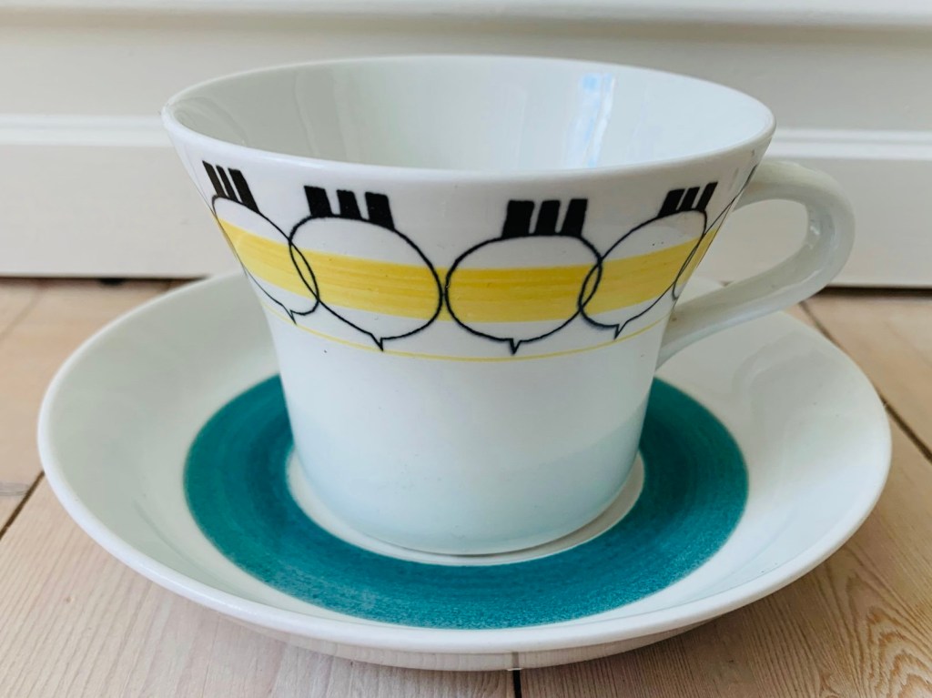 9. Picknick. Av Marianne Westman för Rörstrand, från 1956. Utrop 50 kr, slutbud 12 823 kr hos Tradera för ett år sedan. Ytterligare två Picknickkoppar gick för 12 050 kr resp. 11 499 kr.
