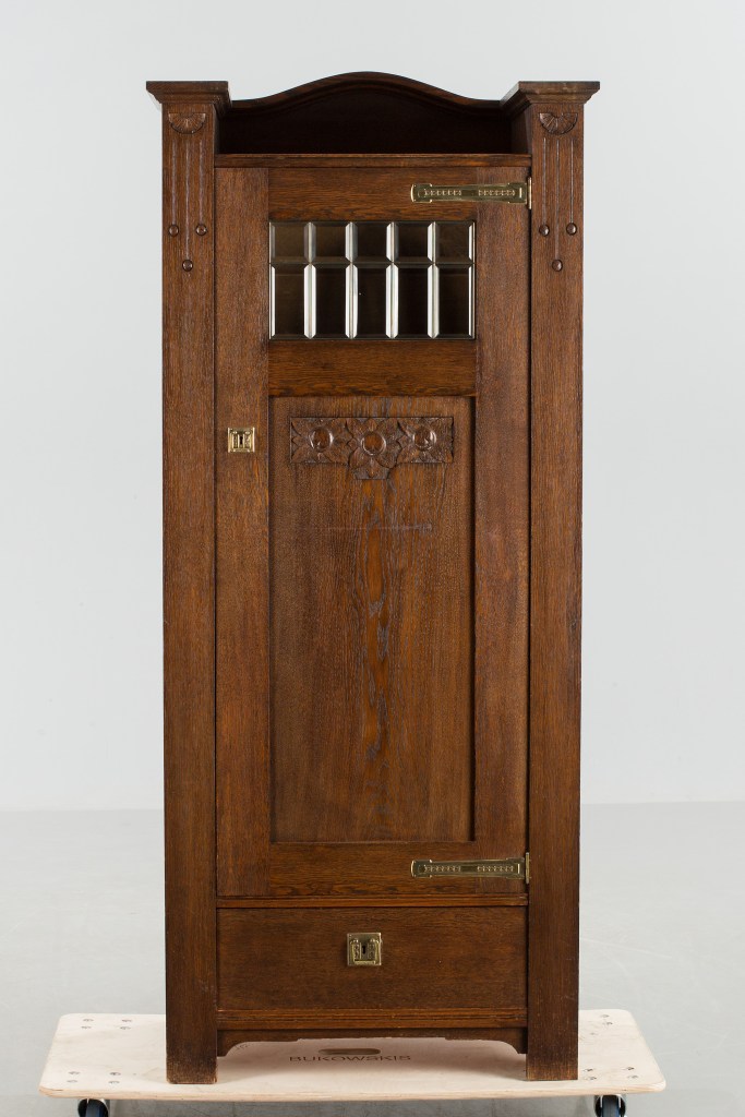 12. Klädskåp. Ett klädskåp i ek med de klassiska äpplena. Virserum var först i Sverige med att göra möbler i ek som blev högsta mode hos en hel generation. Detta skåp är tillverkat hos Oscar Edv. Ekelunds Snickerifabrik Aktiebolag Wirserum, även kallat Bolaget. Hade som mest 260 anställda. Utrop 3 000 kr hos Bukowskis, sålt för 5 000 kr.
