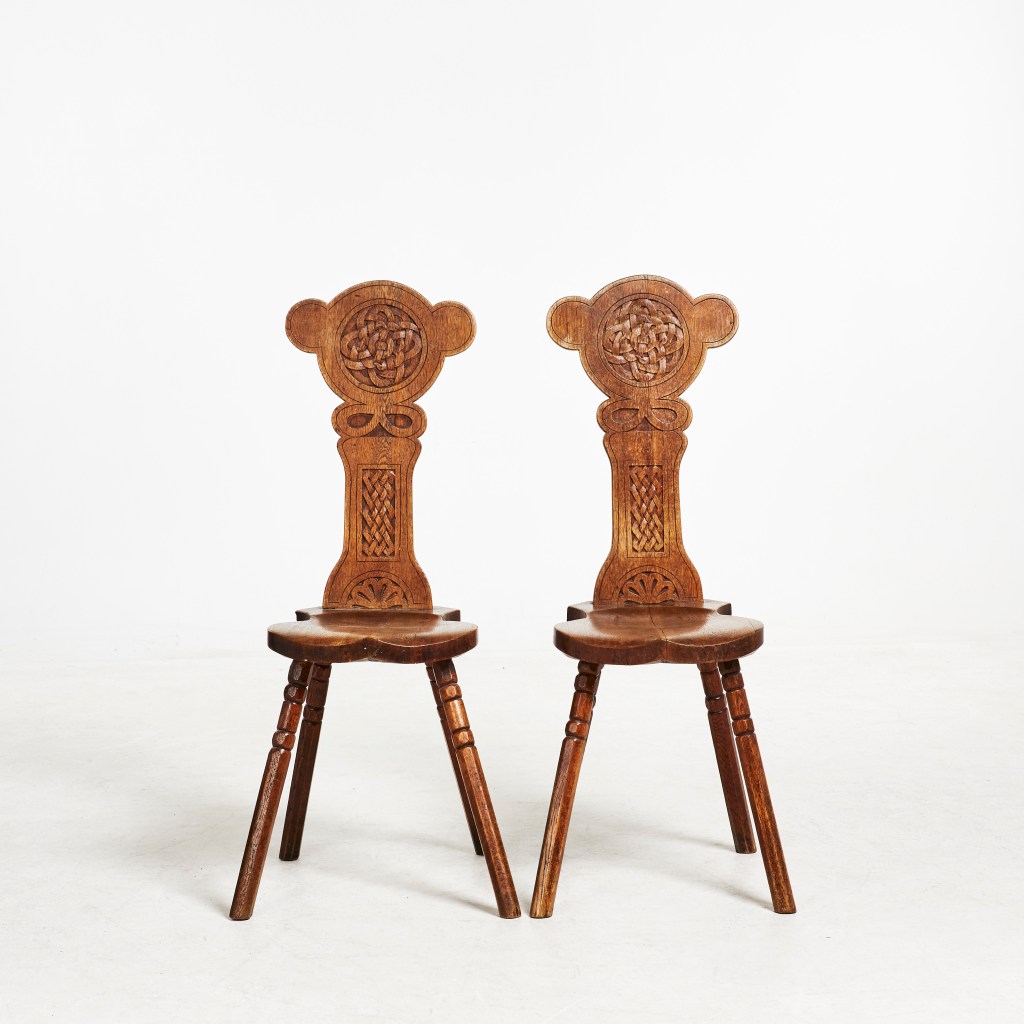 10. StolarFyra stolar, nationalromantik, ek, 1900-talets början. Etikettmärkta: ”A. Johansson’s Snickerifabrik Tynshult & Wirserum.” Utrop 1 500 kr, sålda för 3 397 kr i februari hos Stockholm auktionsverk Globen.
