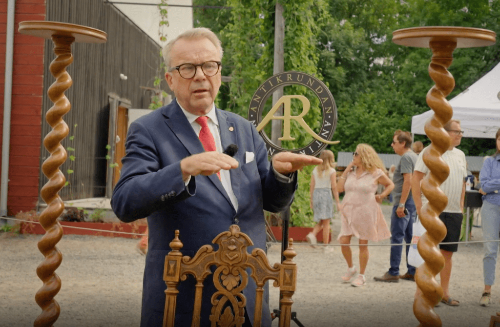 Knut Knutson värderar några stolar tillverkade i Virserum i Antikrundan. Han erkände i programmet att innan han kom till Virserum var möblerna rätt iskalla för honom, men nu blev han berörd och såg vilken kvalité det är. Virserum var en gång i tiden Sveriges möbel Mecka. Där fanns som mest ett 40-tal tillverkare. Nedan kan du se några möbler från Virserum som klubbats på auktion – och några har potential att bli riktiga guldkorn. Foto: SVT