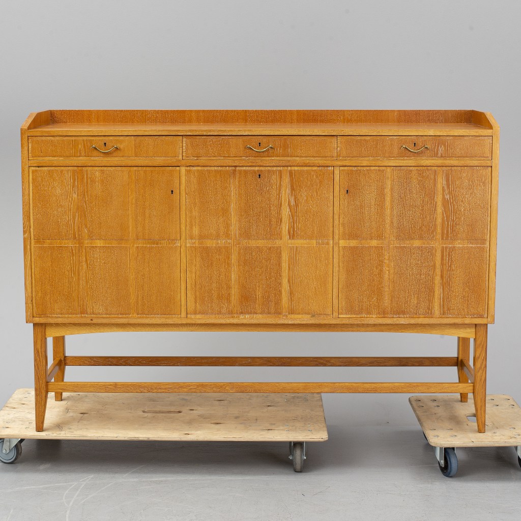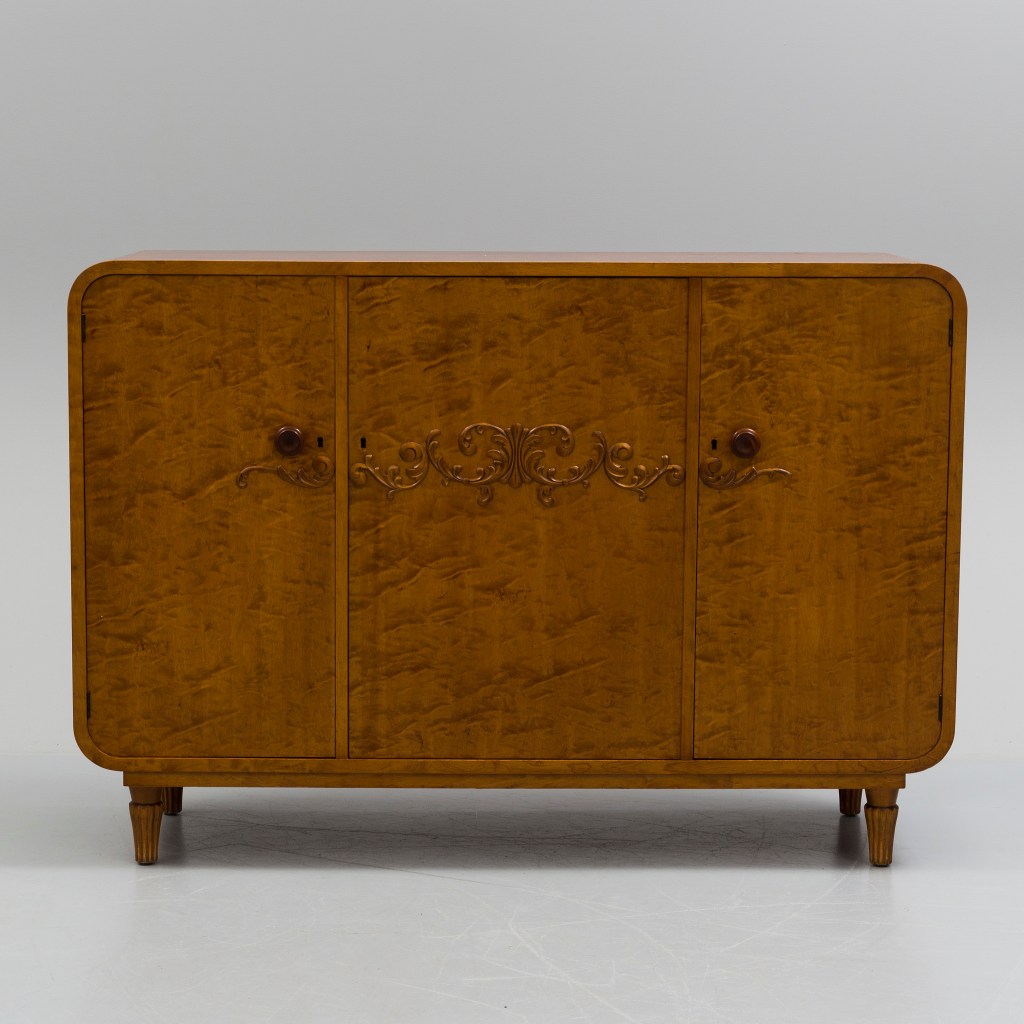 7. Skåp. Vackert skåp från Bröderna Gustavssons, Hultarp, 1940-tal. Björk. Rundade hörn. Utrop 3 000 kr hos Bukowskis, sålt för 1 500 kr.