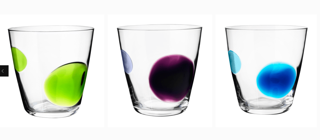 5. Fabulös. Munblåsta glas med handmålade prickar. Varje glas unikt. Kom 2009, formgivet av KostaBodas Gunnel Sahlin. Kostade 25 kr/styck. Har funnits av och till i sortimentet. Några få har sålts på Tradera för mellan 70 och 100 kr/styck.