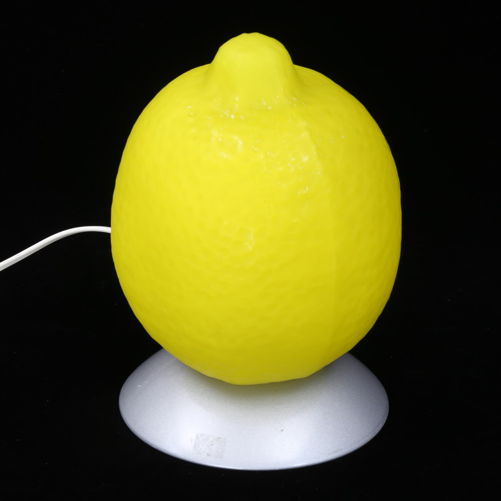 9. Citronlampa . Under 1990-talet kom bordslampor med en underdel i aluminium och kupor i munblåst glas. En hette Fjorton och hade fötter som lampfot. Fanns också ett hjärta. Och en citron som här. De kostade mellan 149 och 199 kr. Citronlampan gick i november för 747 kr på Tradera, hela 19 bud.