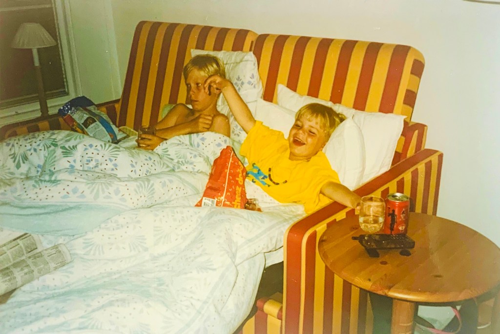 Cocacola, chipspåse, storebror Robin, Fångarna på fortet och en bäddsoffa. Lyckan är total. Sommaren 1995 var vi de första som bodde i det nyrenoverade pensionatet i Byerum på Öland. Under flera år hade det varit flyktingförläggning, men nu hade en välbeställd göteborgare köpt stället och renoverat upp det. 48 lägenheter i ett pensionat med utsikt över raukarna och Blå Jungfrun i Kalmarsund. Varje lägenhet var supersnyggt inredd med Ikeamöbler, till och med porslinet var stämplar Ikea. Och bröderna Gustav och Robin njöt i bäddsoffan Kristianstad från Ikea, klädd i det häftigt randiga tyget By.
