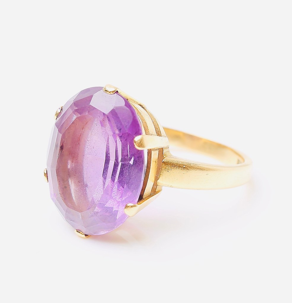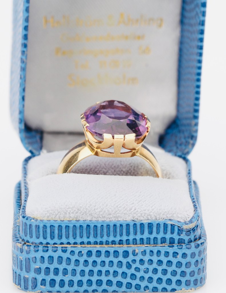4. Cocktailring med ametist, 18K. Utrop 1 000 kronor, klubbad för 1 030 kronor hos Södermanlands auktionsverk.