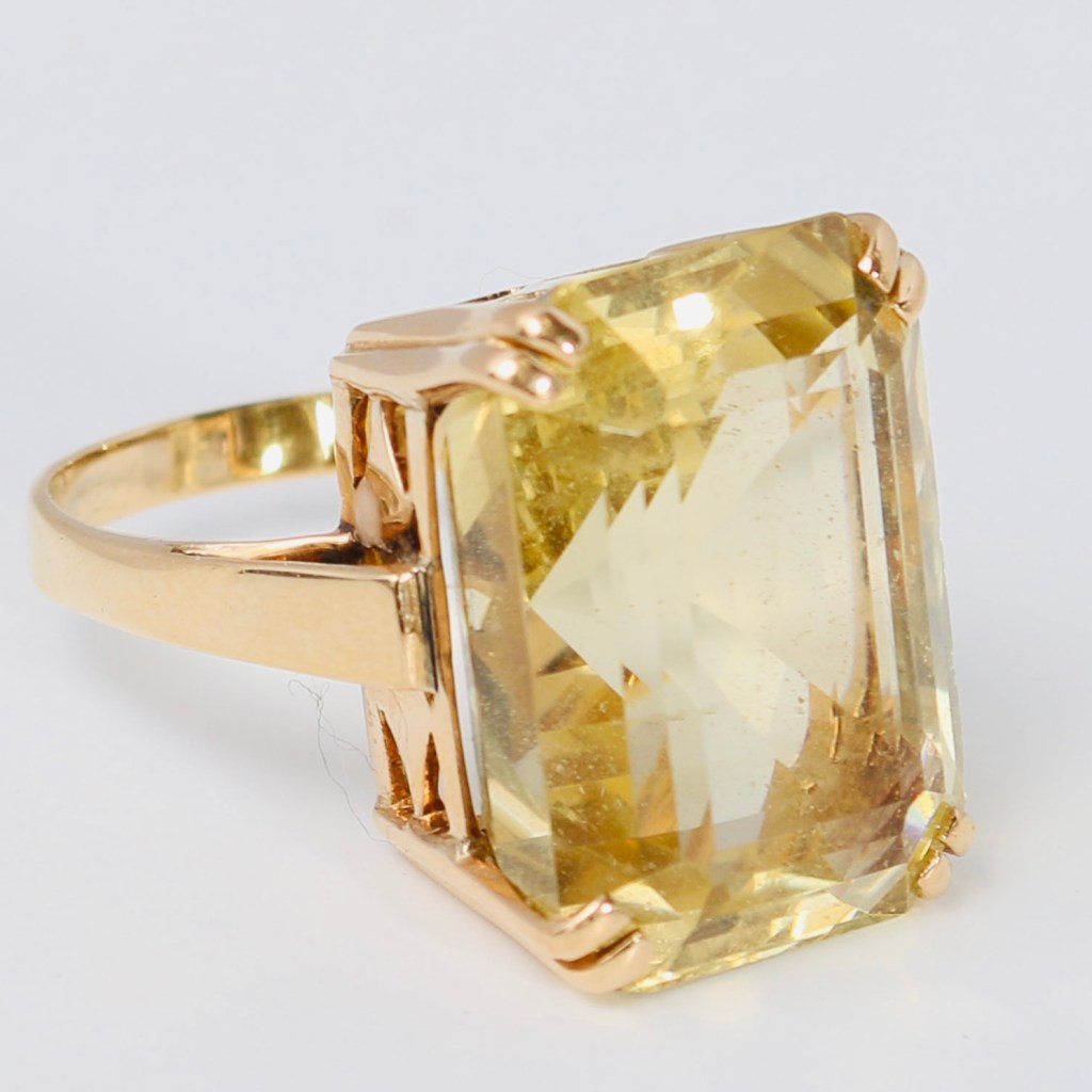 10. Här en stor trapetsslipad citrin, 18K guld. Utrop 4 500 kronor, såld för 4 300 kronor hos Sikö auktioner.