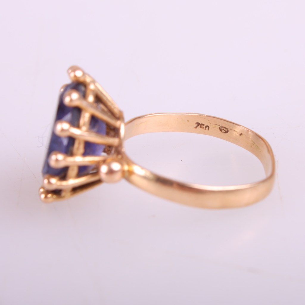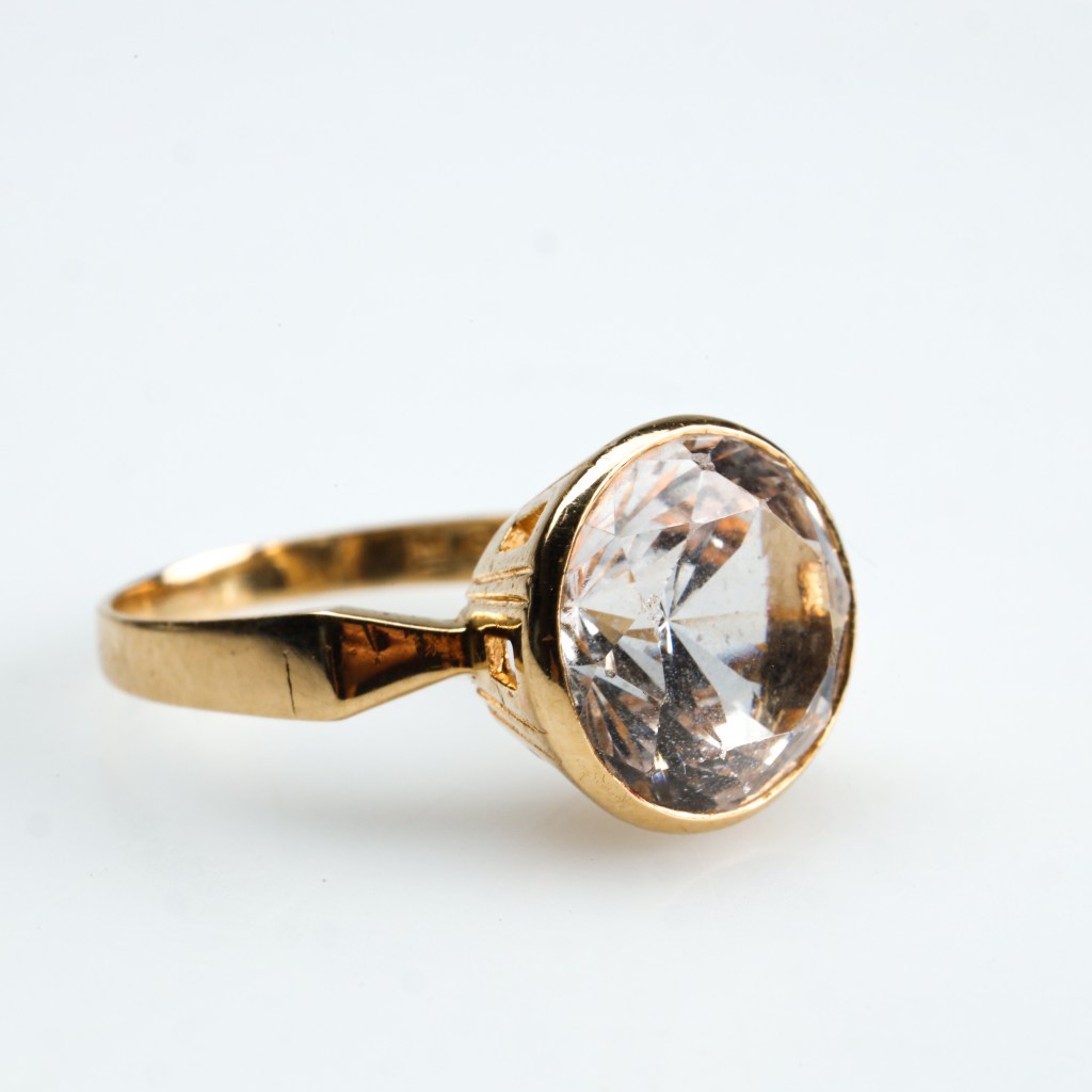 6. 18K guld, syntetisk safir. Utrop 2 000 kronor, klubbad för 2 200 kronor hos Stockholm auktionsverk Malmö.