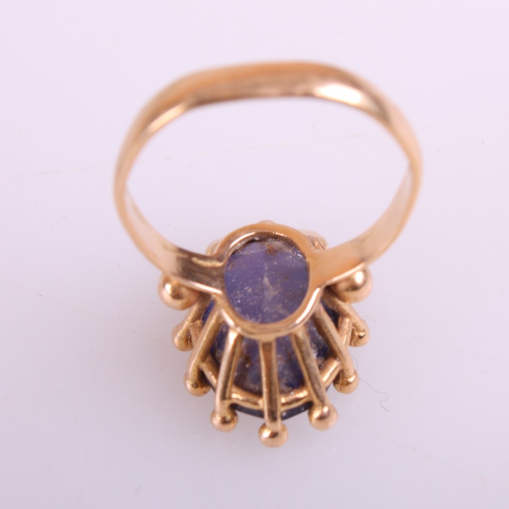 14. Med blå sten, 18k guld, 1940, Juvelfabriken, Stockholm. Utrop 800 kronor, såld för 550 kronor hos Nyköpings auktionsverk.