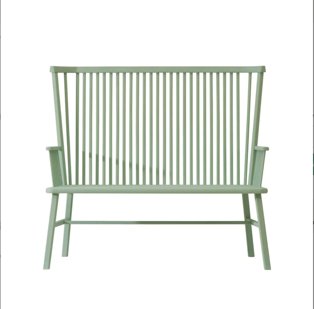 Greta. Soffa som även kom som i en stolmodell år 2014. Ny modernare variant på pinnsoffan och pinnstolen. Design Emma Olbers för Tre Sekler. Tillverkad i svensk björk.