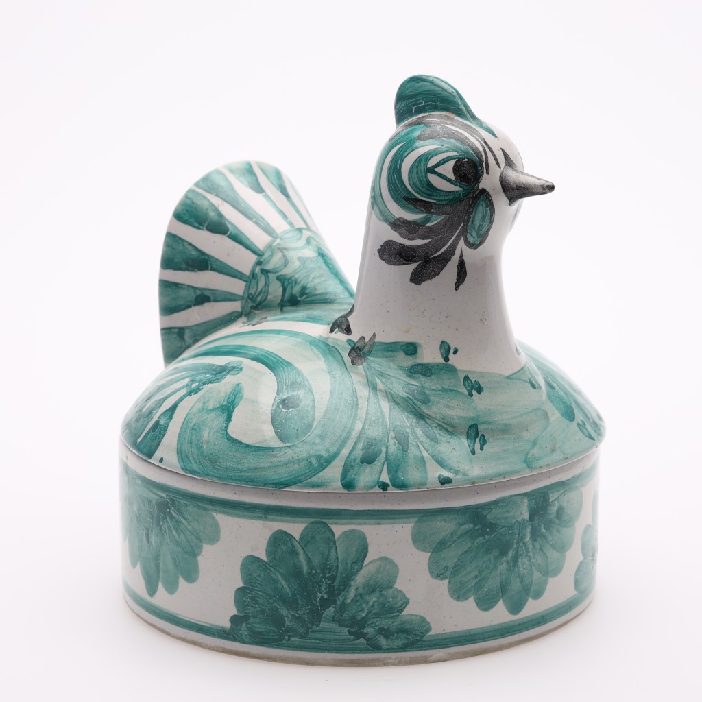 12.Ägghöna, 1800/1900-tal. Gustavsberg. Utrop 1 500 kronor, såld för 1 700 kronor hos stockholm auktionsverk Sickla i mars.