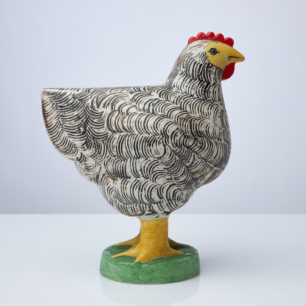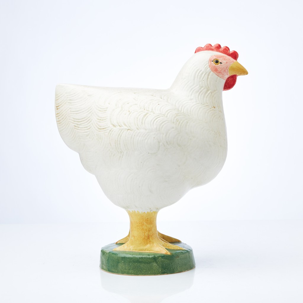 9. Stor höna av Lisa Larson, 31 cm hög. Stämpelsignerad, Gustavsberg. Utrop 1 500 kronor hos Stockholm auktionsverk Sickla, såld för samma summa i mars.