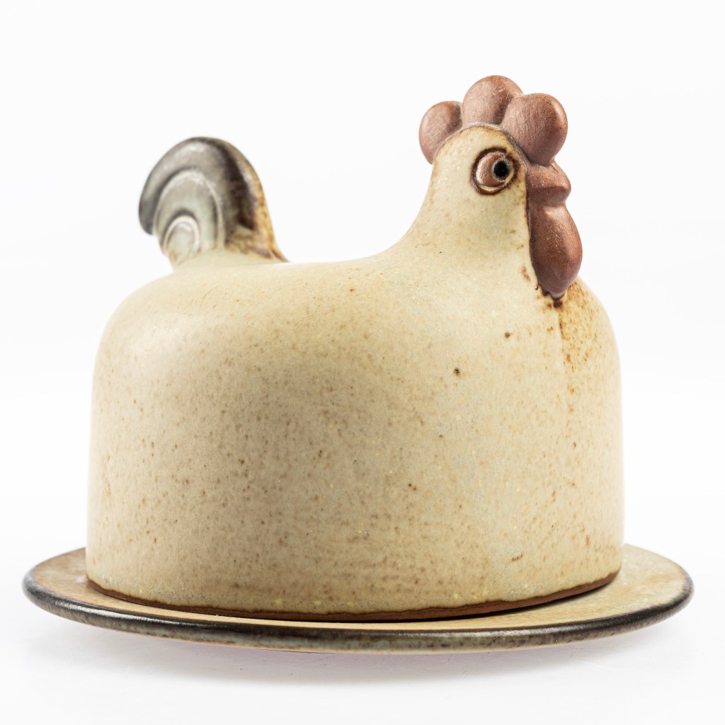 10.Smörhöna av Lisa Larson för Gustavsberg, 10,5 cm hög. Utrop 1 500 kronor, klubbad för 1 300 kronor hos Handelslagret auktionsservice.