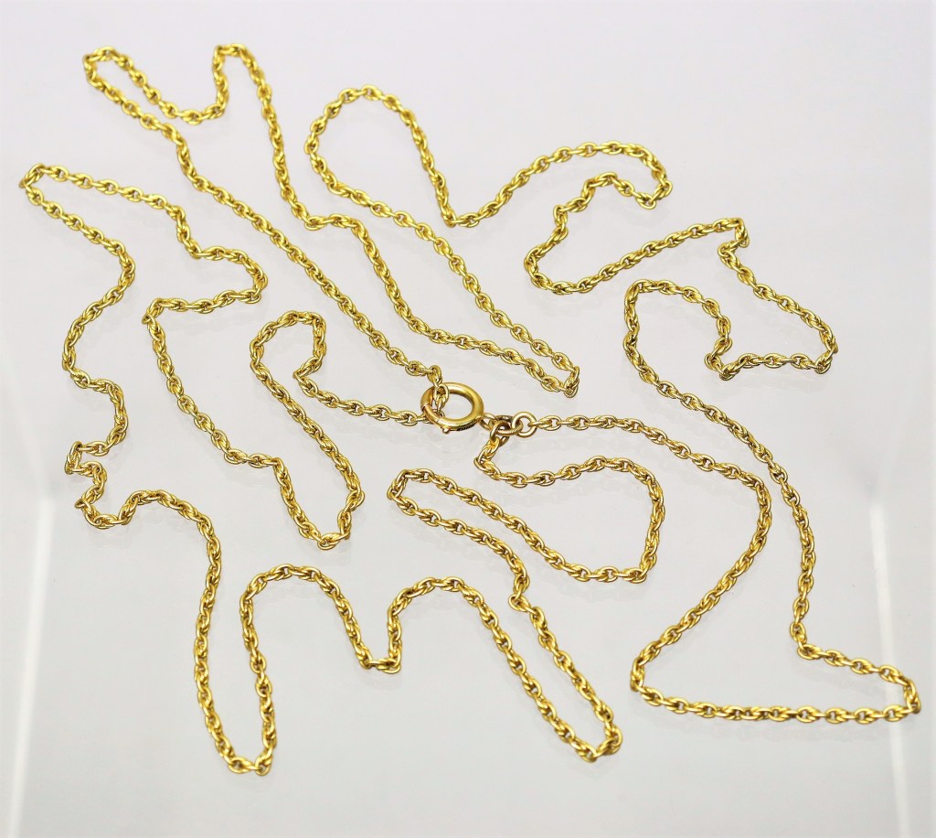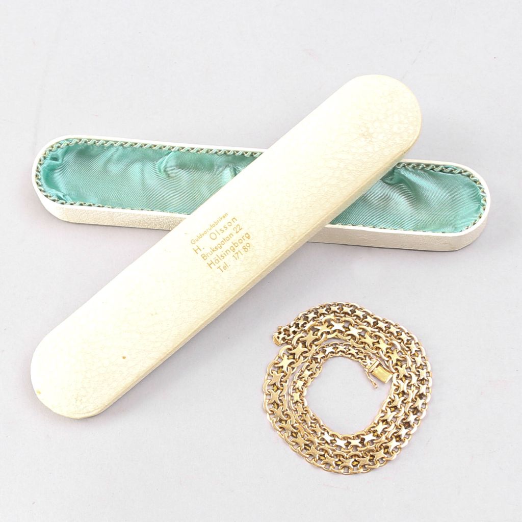 7. Halsband. Guld 18K, längd 46 cm, vikt 44 gram. Utrop 22 500 kronor, sålt för 19 500 kronor hos Sikö auktioner.