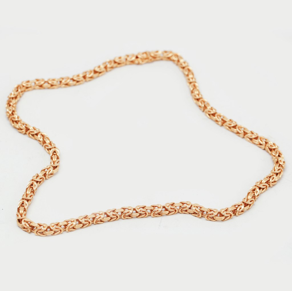 8. Kejsarlänk . Även kallas kungalänk eller kungslänk, är kompakt och tät kedja. Här 18K, 57 cm lång, vikt 113 gram. Utrop 35 000 kronor, sålt för 41 403 kronor hos Göteborgs auktionsverk.