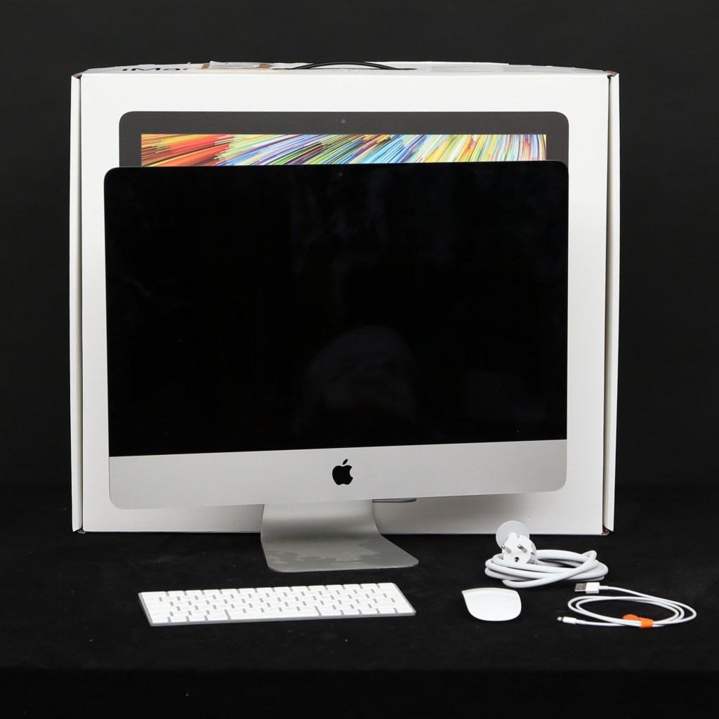 5. iMac årsmodell 2014. 21,5 tum. Med tangentbord (Magic Keyboard), mus (Magic Mouse 2) och strömkabel. Utrop 4 000 kronor, såld för 2 000 kronor hos Gomér & Andersson för två år sedan.
