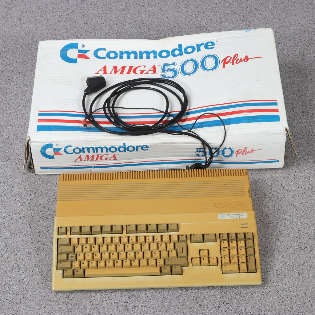 12. DATOR, COMMODORE AMIGA 500 PLUS. Med originalkartong. Utrop 600 kronor, såld för 940 kronor i november hos Skånes auktionsverk.
