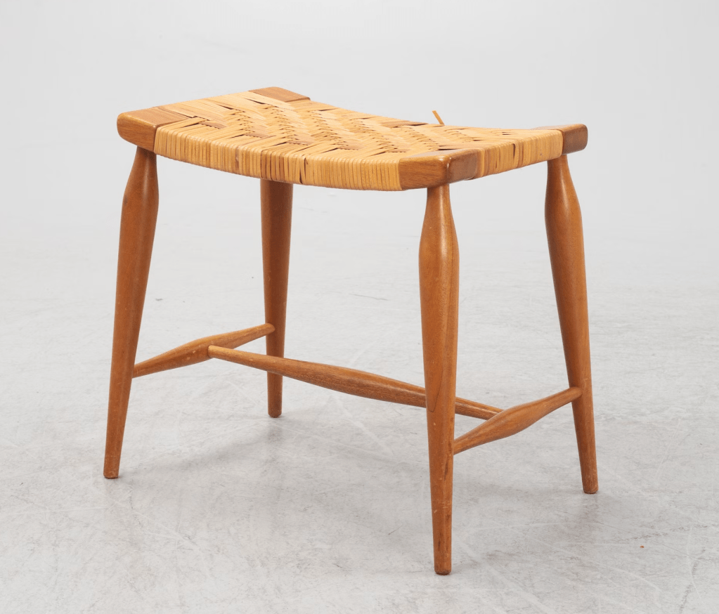 7. Modell 967. Fler och fler pallar av Josef Frank för Svenskt Tenn upptäcks. De går nästan alltid över utropspris. Här modell 967, 1900-talets mitt, mahogny och rottingsits. Utrop 4 000 kronor, såld för 5 710 kronor hos Bukowskis.