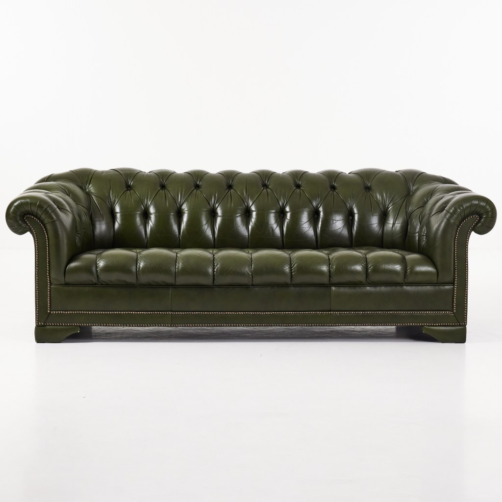 2. Chesterfield. Chesterfieldmodet kommer och går, men det finns en del som älskar dem och inreder med dem även om de inte är trendiga just då. Här en grön med de typiska pärlspiksdekoren vid kanterna, från senare delen av 1900-talet. Utrop 5 000 kronor, klubbad för 10 500 kronor hos Stockholms auktionsverk Magasin 5 i maj.