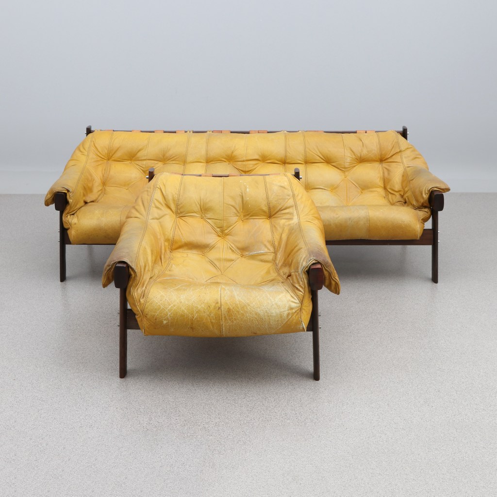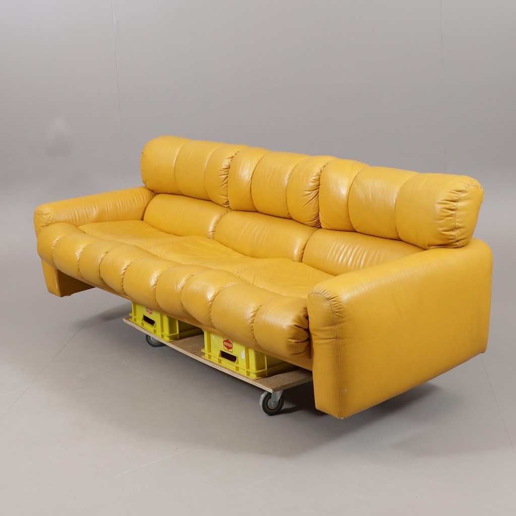 9. Percival Lafer. Sooffa i senapsgult skinn, 1960-tal. Utrop 20 000 kronor hos Skånes auktionsverk, klubbad för samma pris nu i augusti.