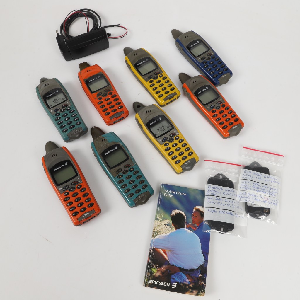 9. Ericsson R310S. Även kallad Hajfenan. En mycket poppis mobil från 2000. Här åtta stycken. Utrop 600 kronor, klubbade för 3 257 kronor hos Helsingborgs auktionskammare för två år sedan.
