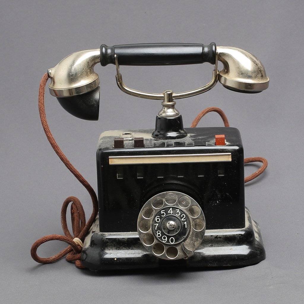 18. Bordstelefon BC 560. I bakelit, var en svensk standardtelefon från 1937. L.M Ericsson och Televerket. Utrop 600 kronor, såld för 450 kronor hos auktionshuset Kolonn.