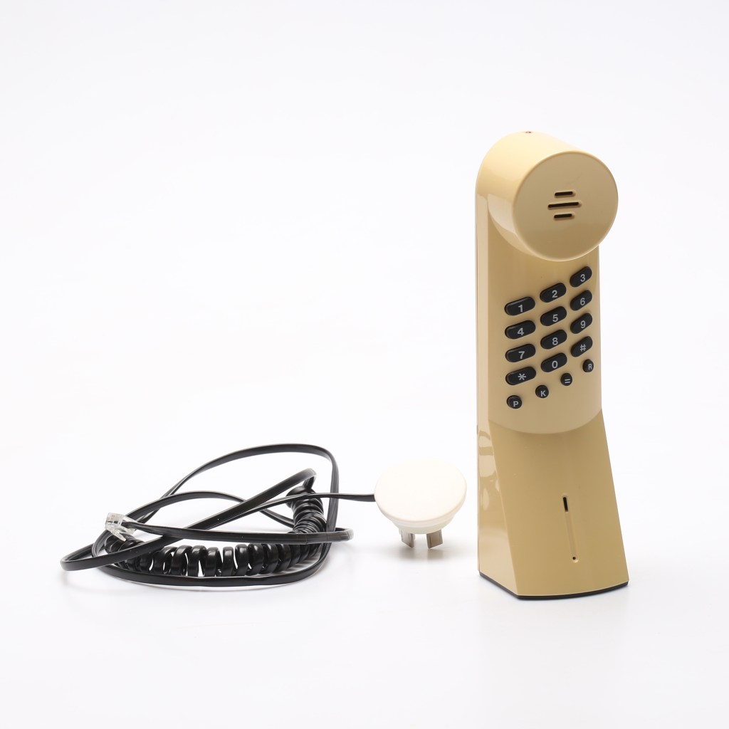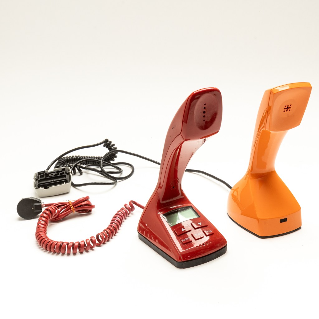 19. Fido. En av de sista modellerna för fast telefoni, från 1989, formgiven av Mats Ekstrand för Svenska Televerket. Här med kartong. Utrop 400 kr, klubbad för 350 hos Gomér & Andersson.