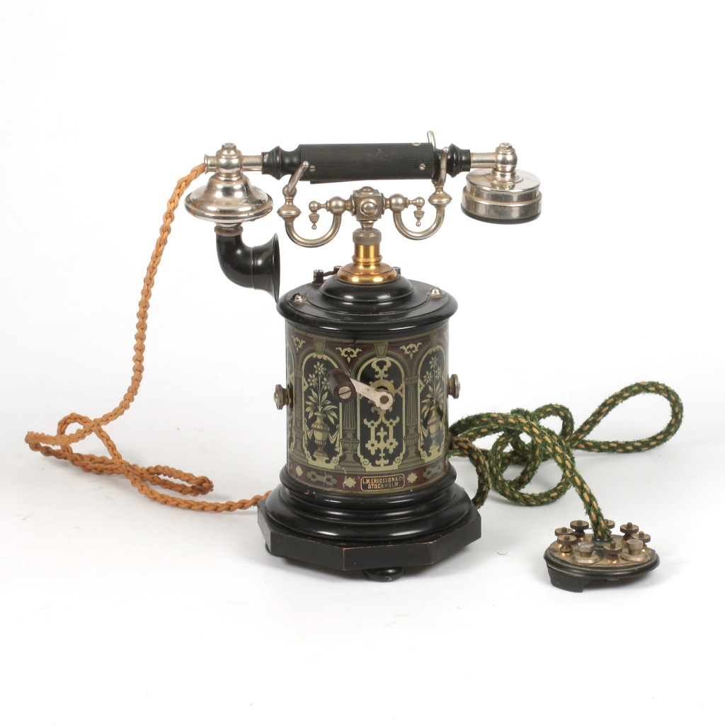 25. Bordstelefon. Märkt A.B.L.M Ericsson, Stockholm, 1900-tal. Utrop 600 kronor, klubbad för 14 001 kronor hos auktionshuset Kolonn.