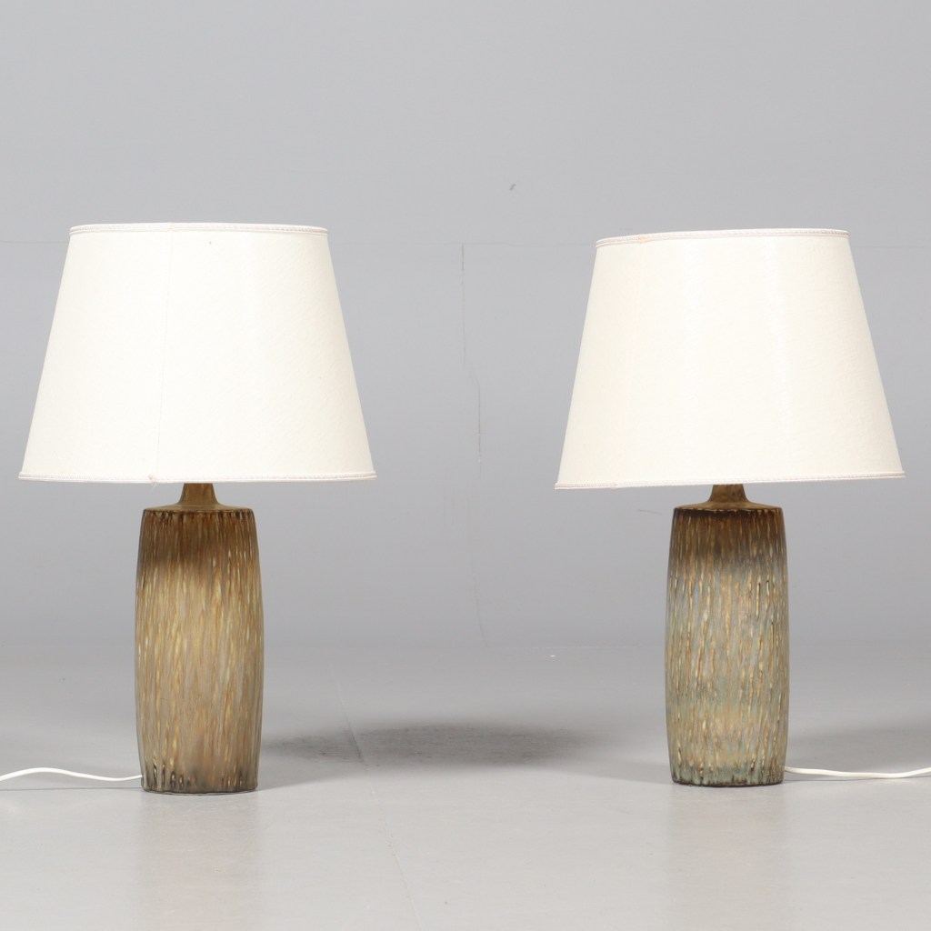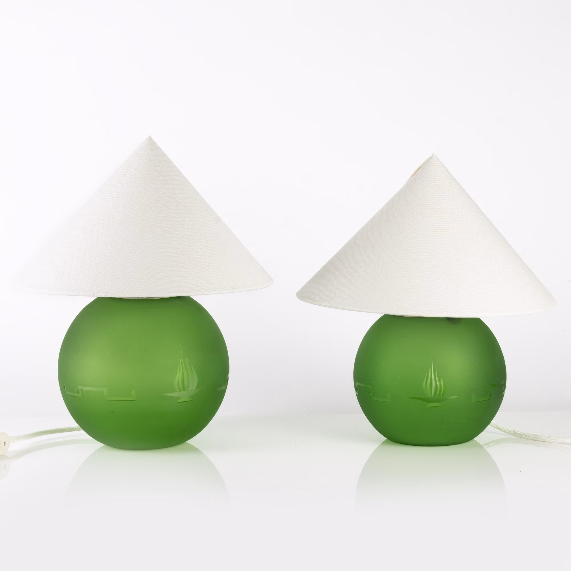 3. Bordslampor 1930-tal. Ett par bordslampor från Kosta glasbruk. Tillskrivna Elis Bergh som var konstnärlig ledare för bruket mellan 1928 och 1950.  Utrop 8 000 kronor, klubbade för 6 400 kronor i september.