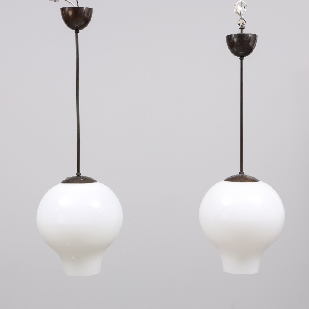 11. Taklampor 1940-tal. Ballongformade kupor i vitt glas. Utrop 1 500 kronor, sålda för 25 000 kronor hos auktionshuset Kolonn.