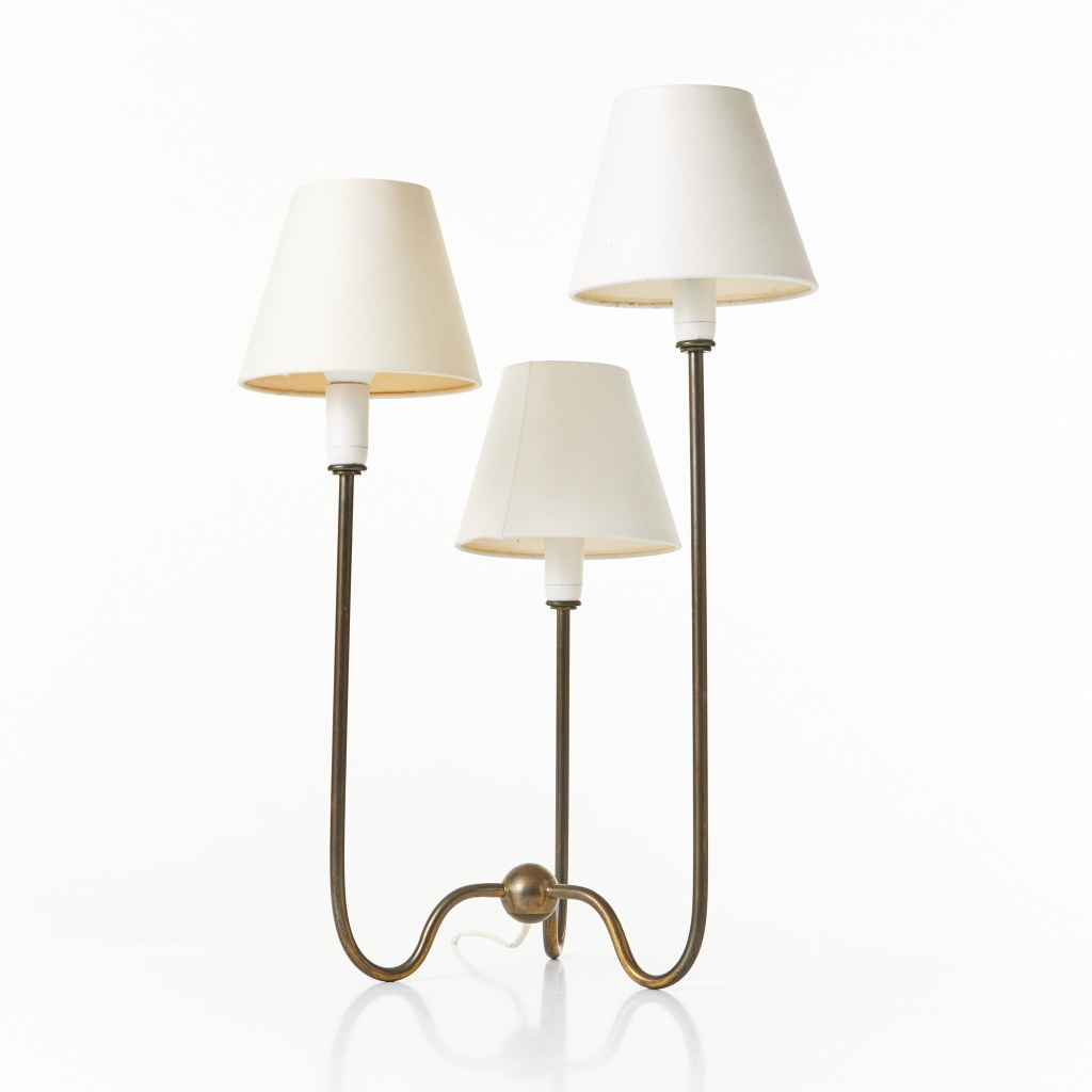 15. Bordslampa Svenskt tenn. Alla lampor från Svenskt tenn har ett mycket högt andrahandsvärde. Här en trearmad lampa av Josef Frank, mässing. Utrop 5 000 kronor, klubbad för 13 000 kronor hos Stockholms auktionsverk Magasin 5.