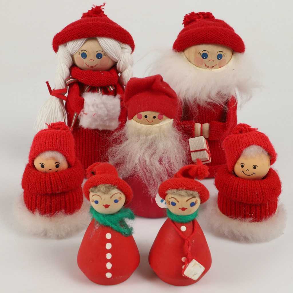 22. Trätomtar. Gamla små tomtar i trä från 1940 fram till slutet av 1900-talet har fått ett rejält uppsving. Här ett luciatåg med tomtar och stjärngossar. Utrop 75 kronor, klubbade för 805 kronor hos Tradera.