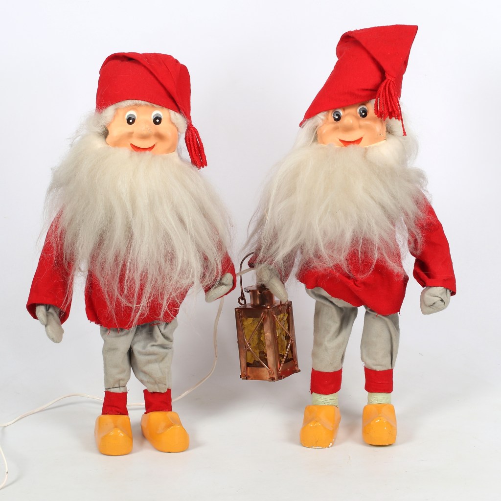 15. Söderhällgårdstomtar. I Älvkarleö i norra Uppland finns Söderhällsgården, här har man haft en tomteverkstad sedan 1940-talet. Här två tomtar, med elektrisk lykta, 60 cm höga. Utrop 600 kronor, sålda för 751 kronor hos stadsauktion Sundsvall.
