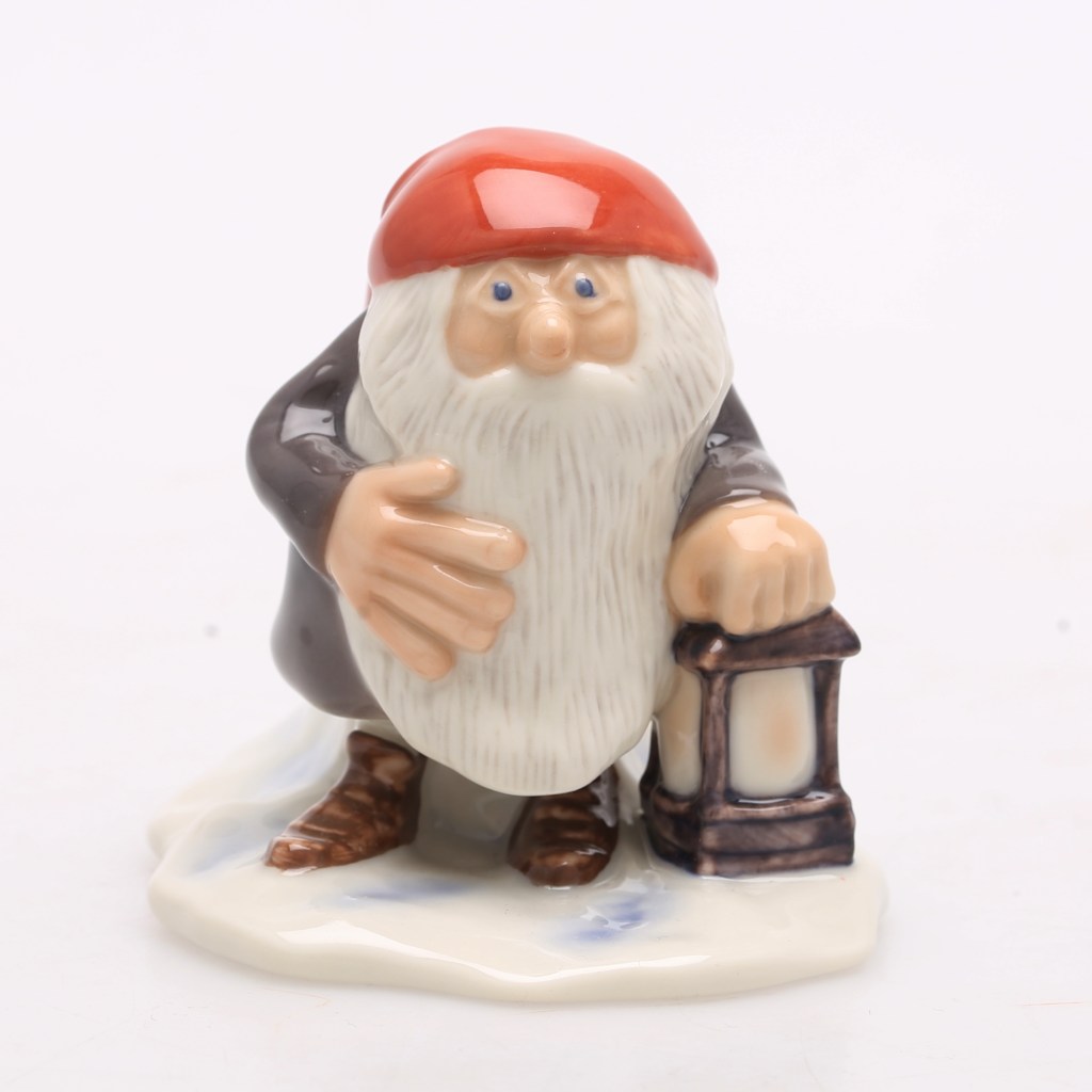 8. Harald Wiberg tomte. För Royal Copenhagen. Harald Wiberg var målare, tecknare och illustratör, född i Småland. Främst känd för sina djurmotiv, men har även illustrerat Astrid Lindgren böcker. Han var även en tv-profil och blev känd när han ledde naturprogrammet Korsnäsgården i SVT. Hans tomtar som är cirka 10-15 cm stora brukar gå för 2 000 till 3 000 kronor styck.