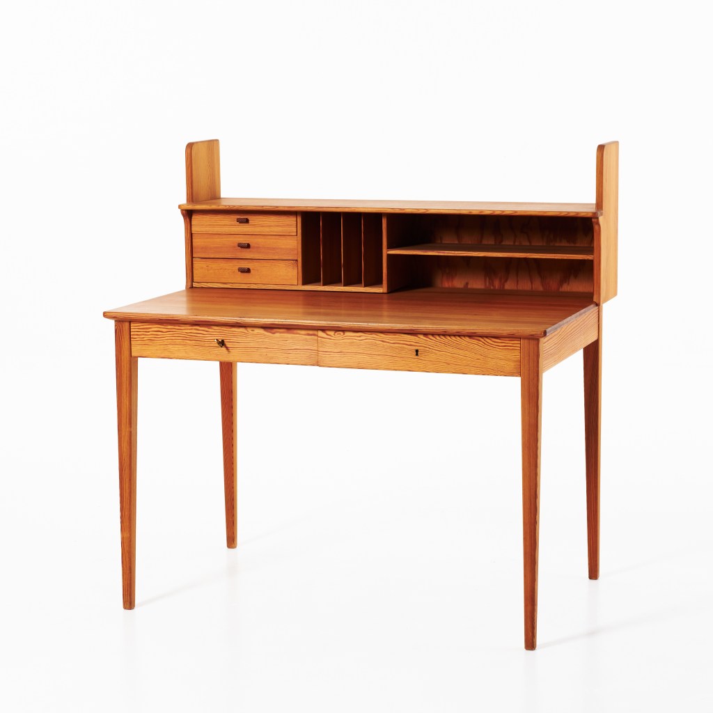 5. Fryklund. Skrivbord som ritades 1948. Furu. Utrop 10 000 kronor, klubbat för 13 000 kronor hos Stockholms auktionsverk Magasin 5.