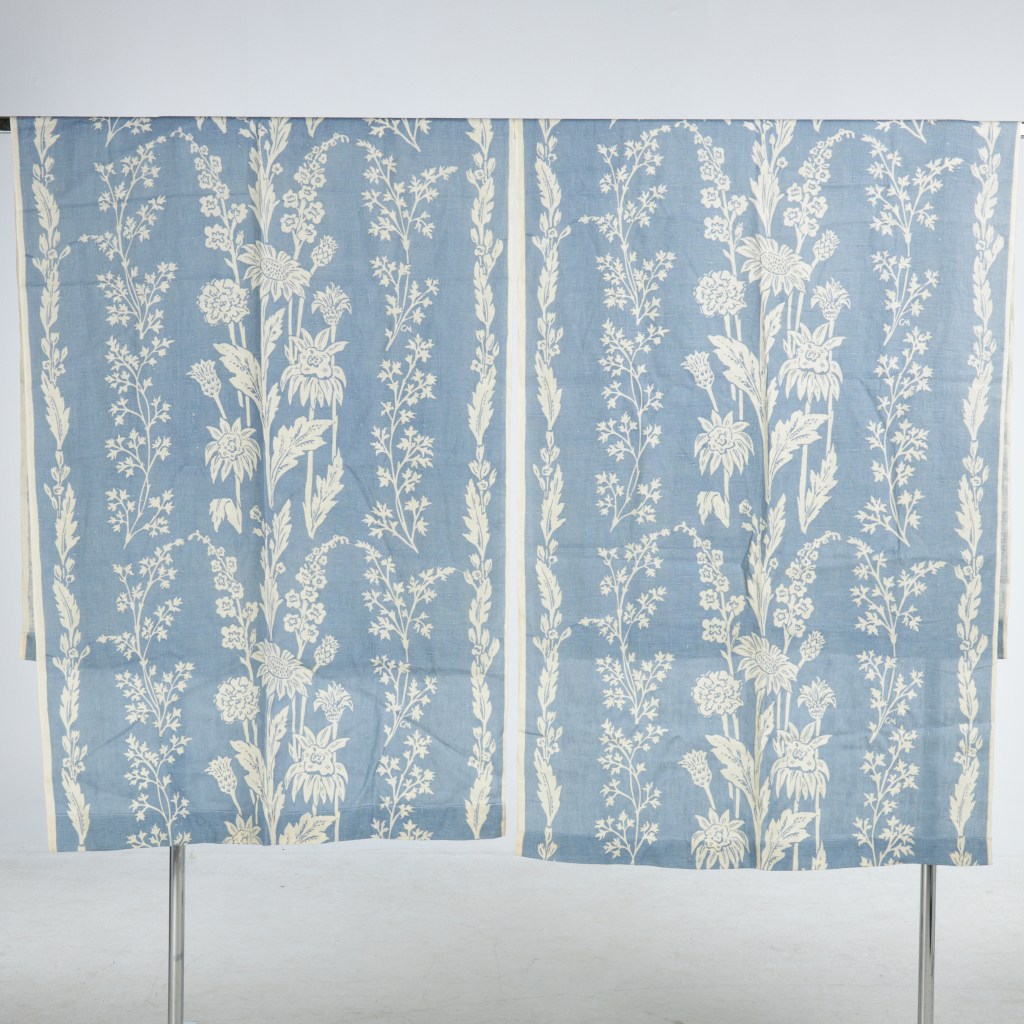 8. Solros. Malmsten har ritat flera mönster till textil. Här Solros, två gardinvårder, 1940/50-tal. Utrop 2 000 kronor, sålda för 3 200 kronor hos Stockholms auktionsverk Sickla.