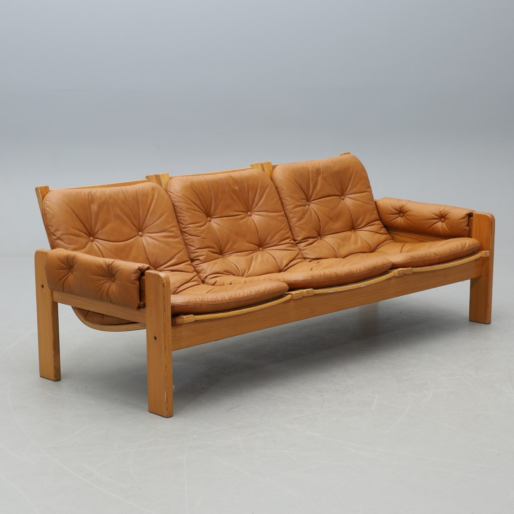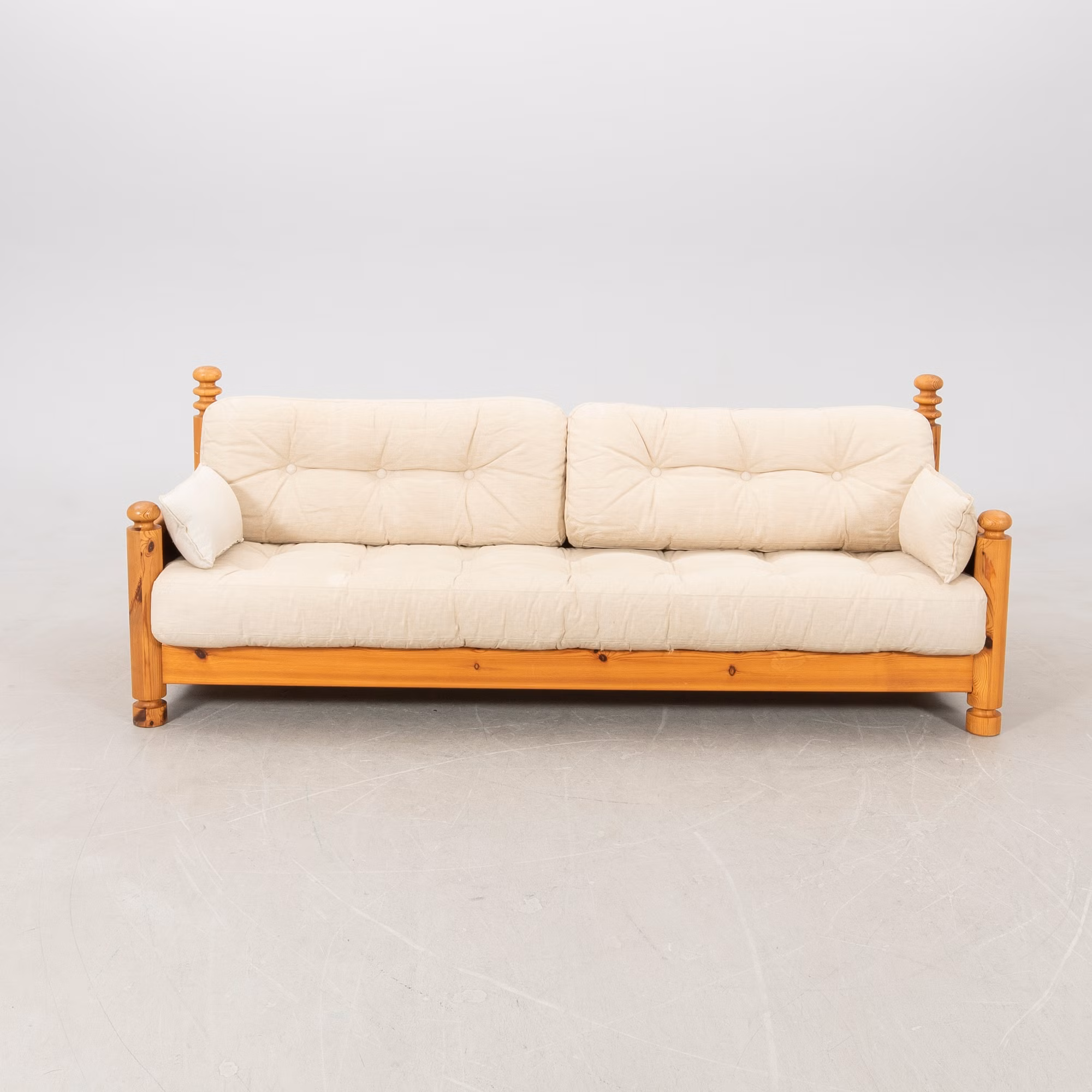 11. Combolato. Soffa i furu och skinn av Yngve Ekström. Han ritade många rustika soffor i furu under 1970-talet. Utrop 2 000 kronor, klubbad för 7 428 kronor i september hos Crafoord auktioner i Malmö.