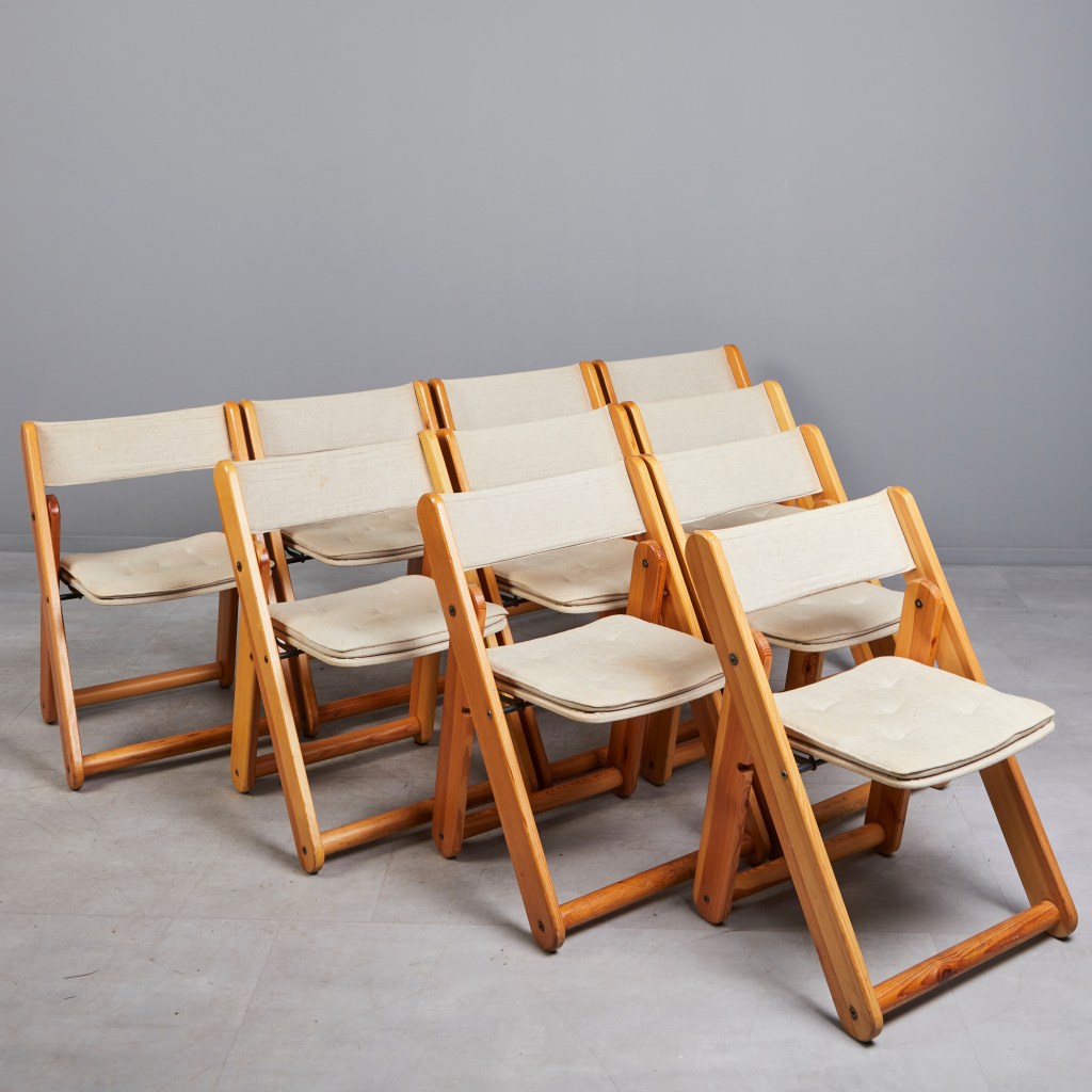8. Kon-Tiki. Hopfällbar stol av Gillis Lundgren för Ikea. Tio stycken. Utrop 8 472 kronor, klubbade för 7 354 kronor hos Stockholms auktionsverk.