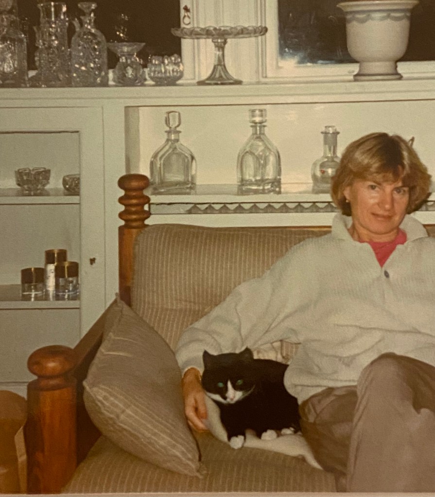 2. Soffa. En soffa som jag växte upp med. Från Luxus i Vittsjö. För några år sedan tog inte auktionshusen emot dem, nu klubbas de för mellan 5 000 och 10 000 kronor. Ibland mer. till höger syns mamma vila ut i vår soffa, katten Tyson trivs också.