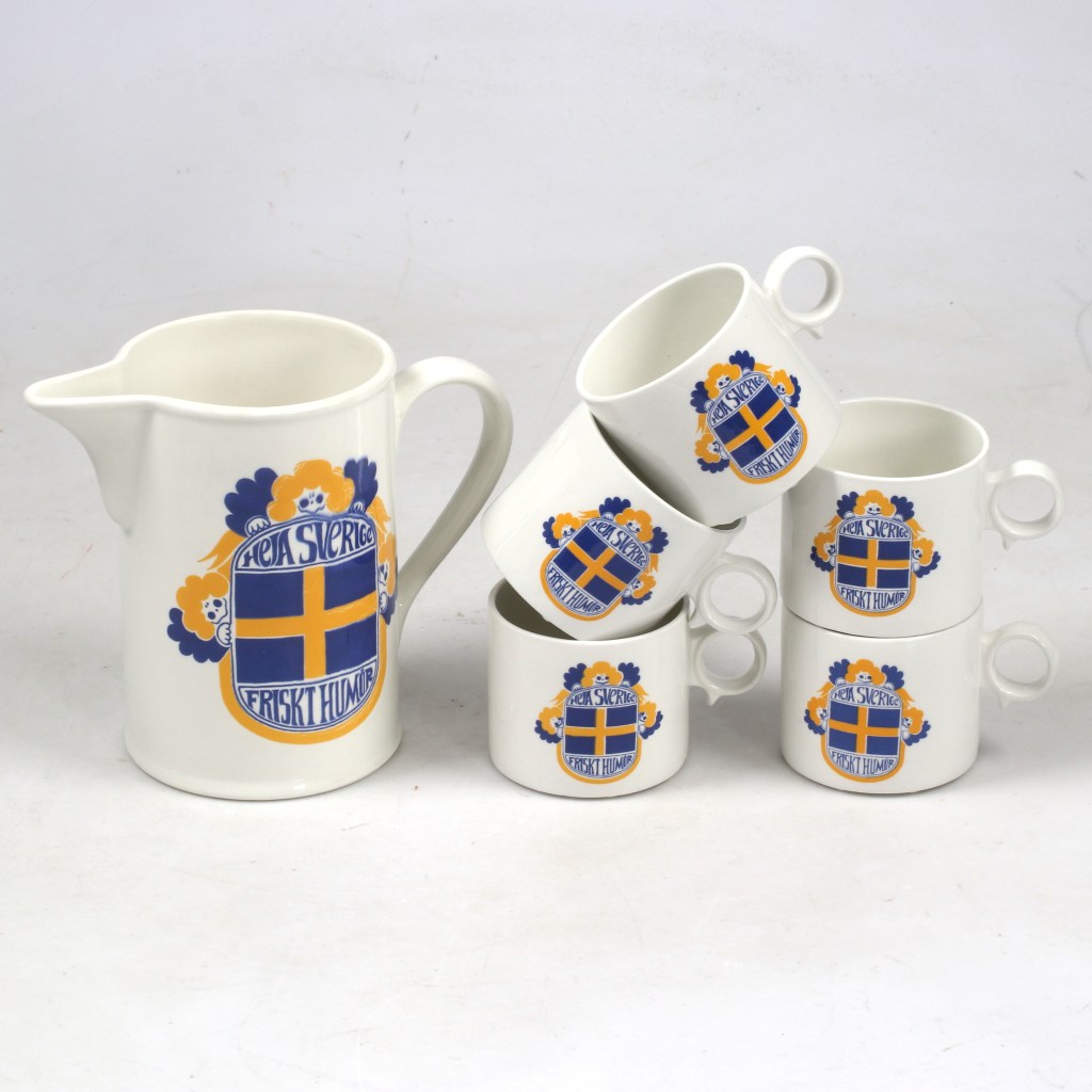 6. Heja Sverige. En glatt mönster som först kom på en potta och blev en hit! Sedan kom mönstret på koppar. Här sex delar, utrop 800 kronor, sålda för 1 858 kronor hos stadsauktion Sundsvall.