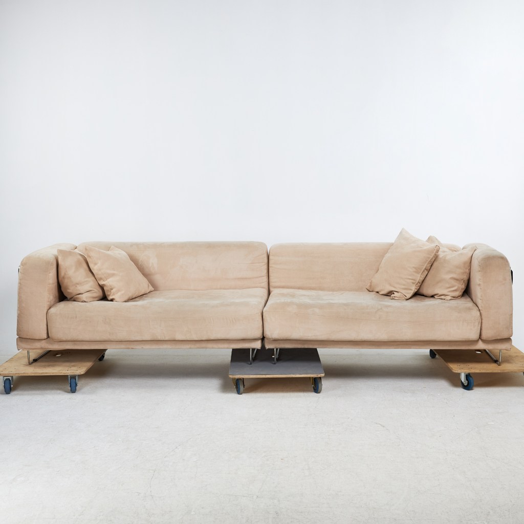 3. Ikeasoffa. Tylösand från slutet av 1900-talet. Utrop 4 000 kronor, klubbad för 5 500 kronor hos Stockholms auktionsverk.