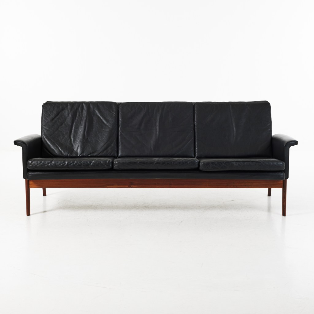 4. Jupiter. Svarta skinnsoffor från 1960-talet har gått bra länge. Nu har de dock fått konkurrens av cognacsfärgade. Här är en dansk i svart i skinn, formgiven av Finn Juhl för France & Son, från 1965. Utrop 12 000 kronor, klubbad för 9 000 kronor hos Stockholms auktionsverk.