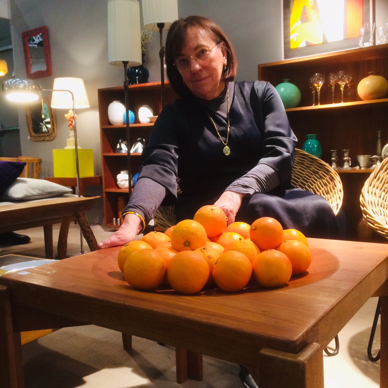 Redan första kvällen av Antikmässan upptäckte jag detta lilla bord i teak. Tyckte det var hur snyggt som helst, men hade inte en aning om vem som låg bakom det. Mannen som driver retroaffären Den femte våningen i Midsommarkransen utanför Stockholm berättade att det var ett bord av Yngve Ekström. Var på vippen att slå till, men var skulle jag ha det? Ville dock veta mer om bordet så jag ringde väninnan Brita-Lena Ekström som är dotter till Yngve. Men oj, är fruktbordet på Antikmässan, sa Brita-Lena. Jag har en hel del av pappa, men inte just det. Det har jag faktiskt varit på jakt efter. Nästa morgon var Brita-Lena på plats på Antikmässan och köpte bordet som hennes pappa Yngve formgav för Källemo. Pris: 3 900 kr. Fruktbordet har hittat hem!