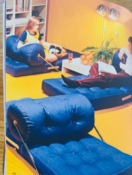 Föregående bild Nästa bild img_8789 Vi klädde oss inte bara i jeans och manchester under 1970-talet, även möblerna var jeans- eller manchesterklädda. Denna liggvänliga soffgrupp heter tajt och kom 1973, design Gillis Lundgren. På väggen två Klot lampor.